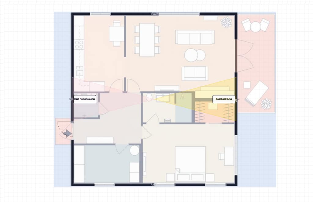 The recommendation from the analysis: beds and sleeping areas in the Hongluan zone strengthen romantic relationships. Couple seating and romantic decor activate the love energy. Desks and office furniture in the Tianxi zone boost career opportunities. The bedroom designed for romance may benefit more from the feng shui energy flow of other systems while the annual romance star sits elsewhere.